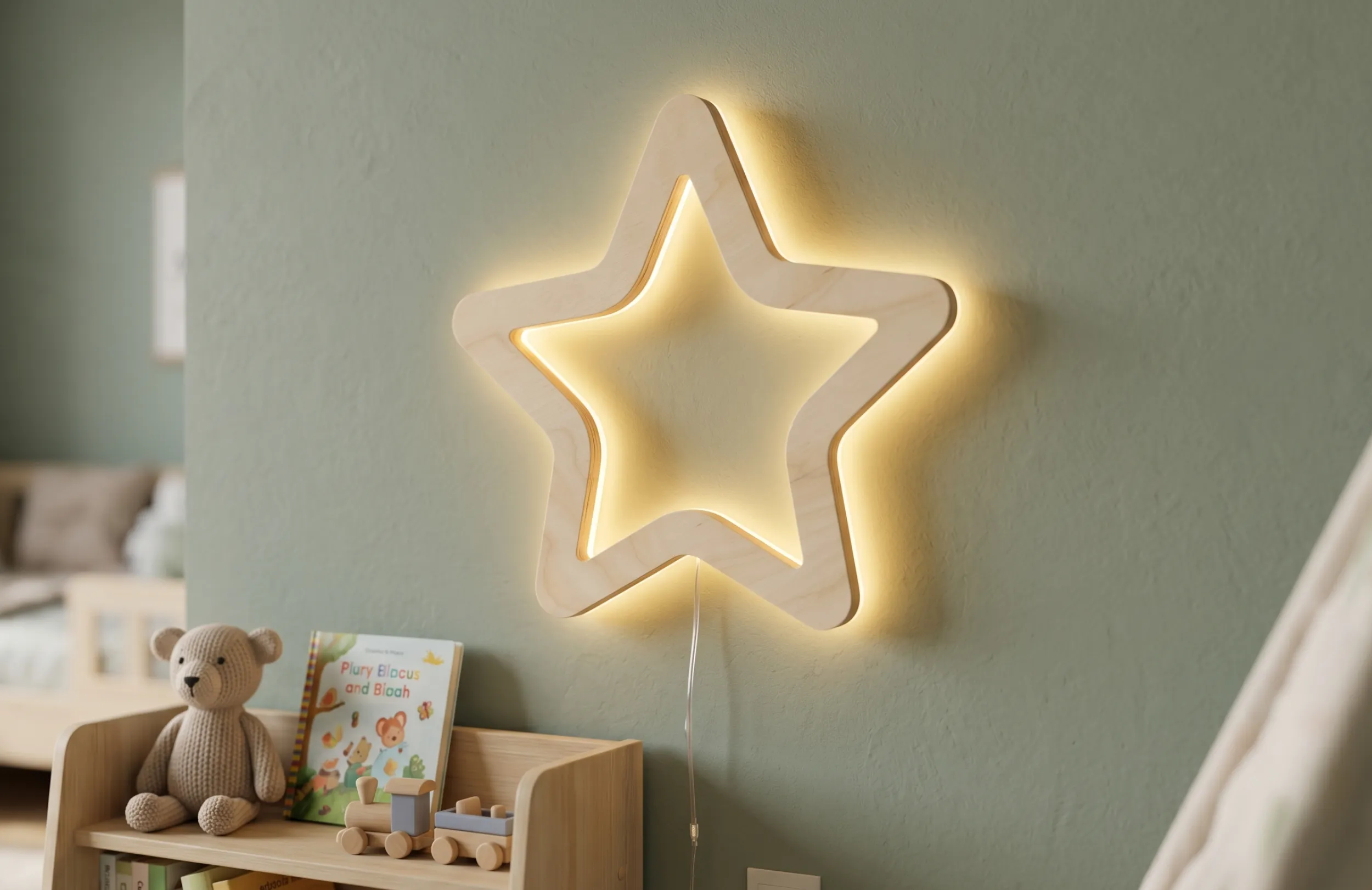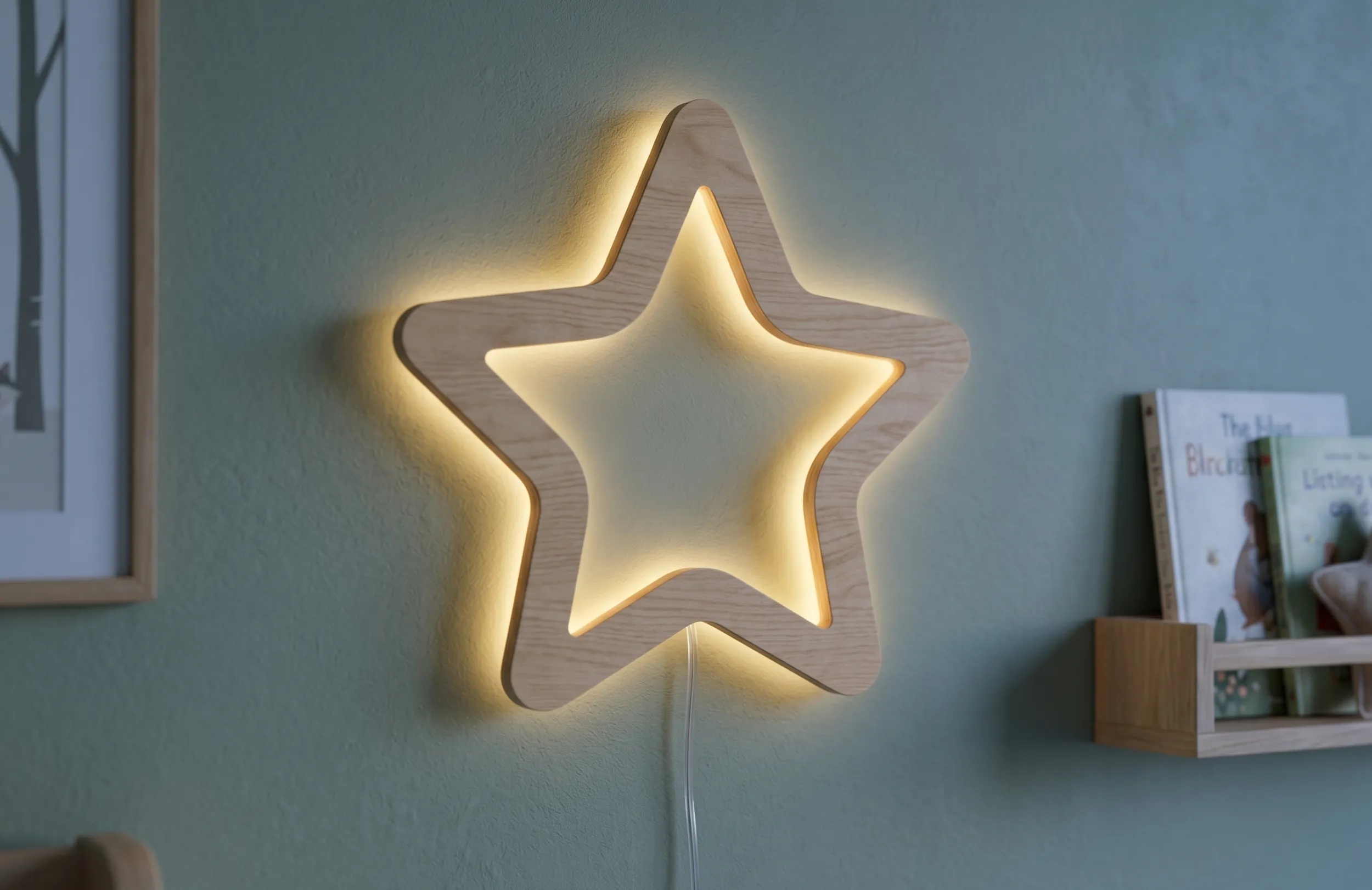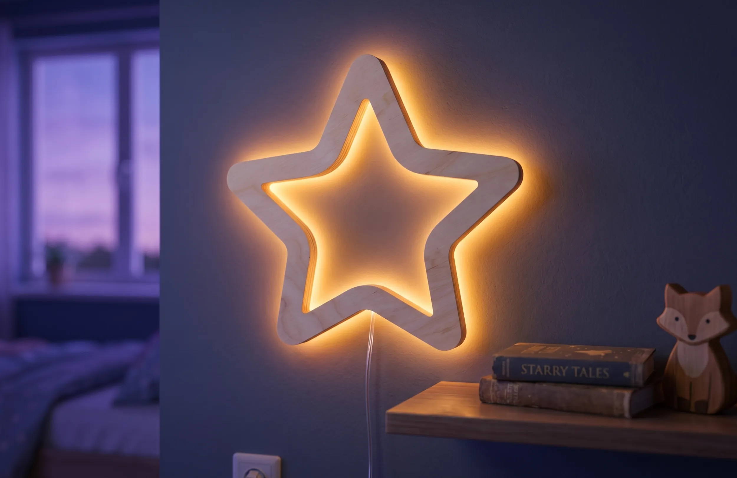Wprowadź do swojego wnętrza odrobinę magii dzięki podświetlanej gwiazdce LED. Ten wyjątkowy element dekoracyjny, precyzyjnie wycięty z naturalnej sklejki wysokiej jakości, łączy w sobie surową elegancję drewna z nowoczesną technologią oświetleniową. To nie tylko ozdoba, ale funkcjonalny dodatek, który nada każdemu pomieszczeniu przytulny, niemal bajkowy klimat.