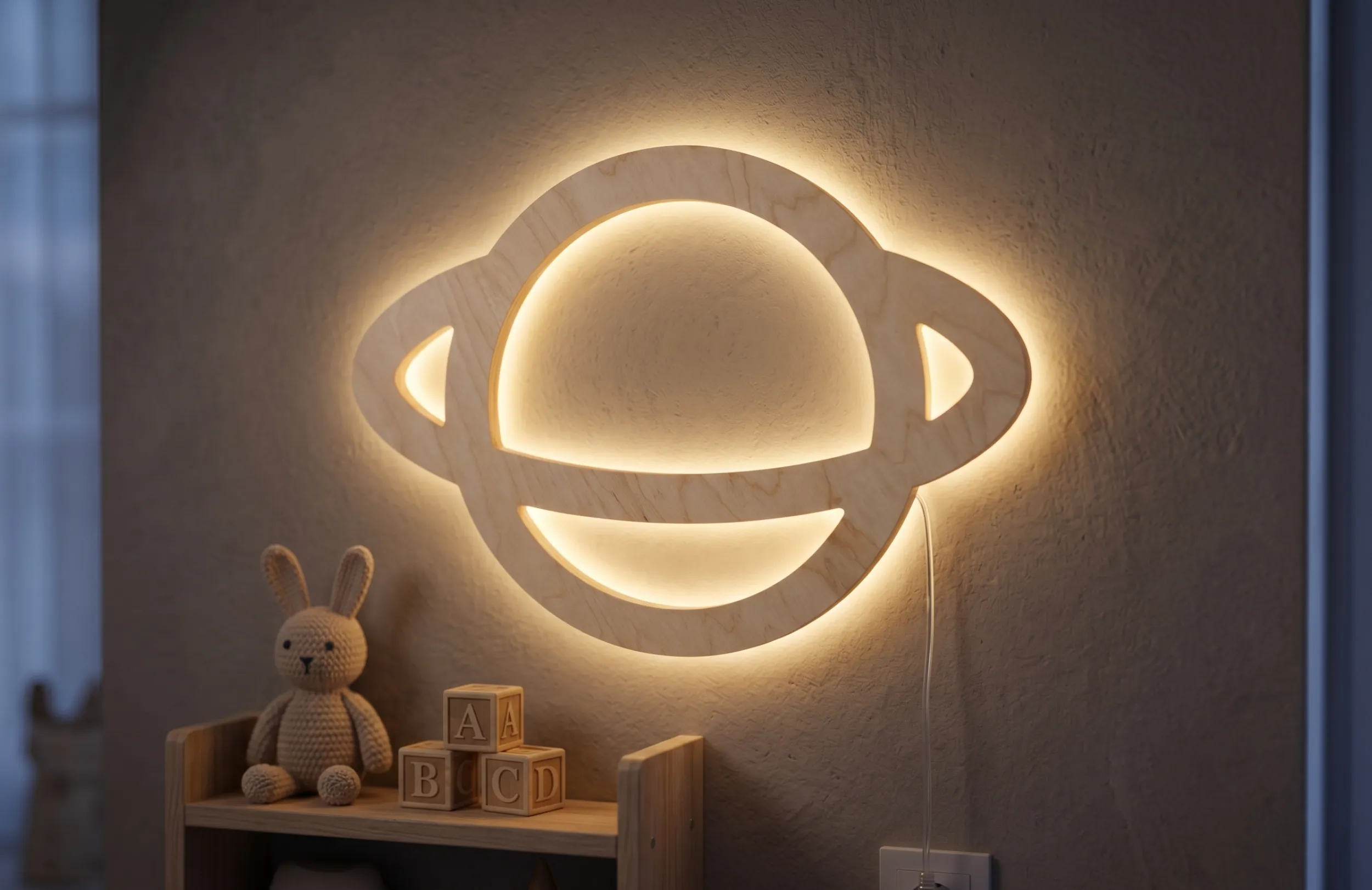 Podświetlana planeta LED – kosmiczna dekoracja z naturalnej sklejki
