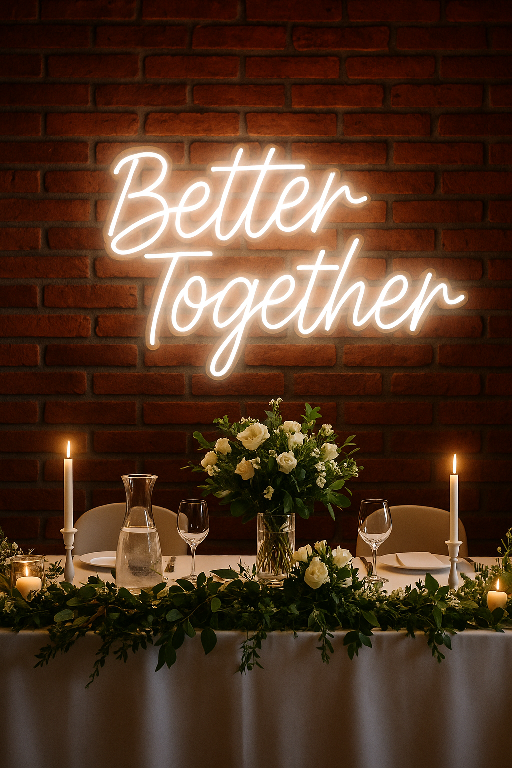 Szukasz wyjątkowej ozdoby na swoje wesele? Ten fantastyczny neon LED to idealne połączenie designu i przytulnego światła na sali weselnej lub na sesji zdjęciowej. Napisy wykonujemy z elastycznego węża LED świecącego w kilku kolorach do wyboru, a tło stanowi przeźroczysta pleksi, co daje efekt głębi.
