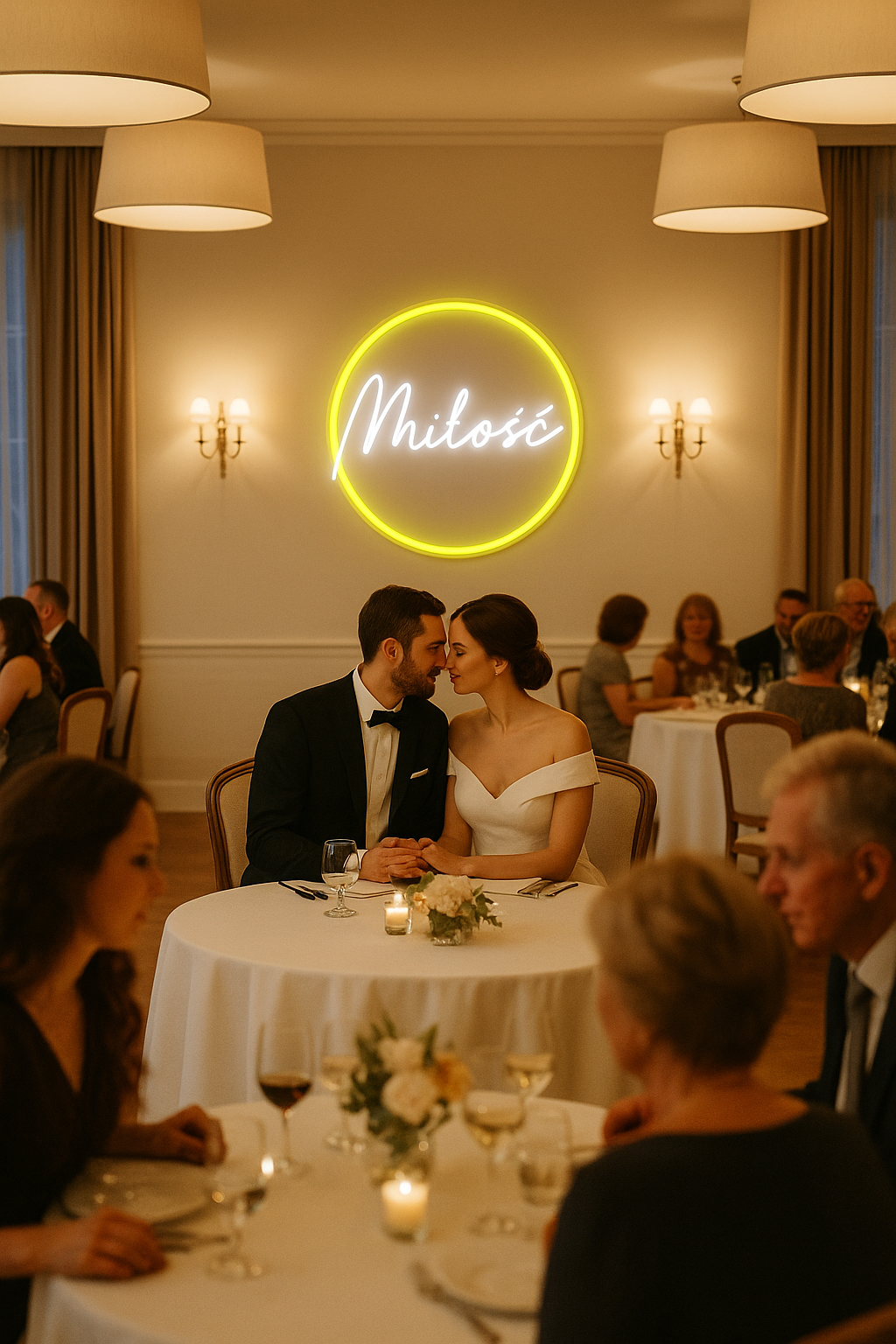 Dzięki takiej dekoracji, neon LED na wesele z napisem stanie się nie tylko pięknym elementem aranżacji, ale również doskonałą atrakcją dla gości i tłem do niezapomnianych fotografii.