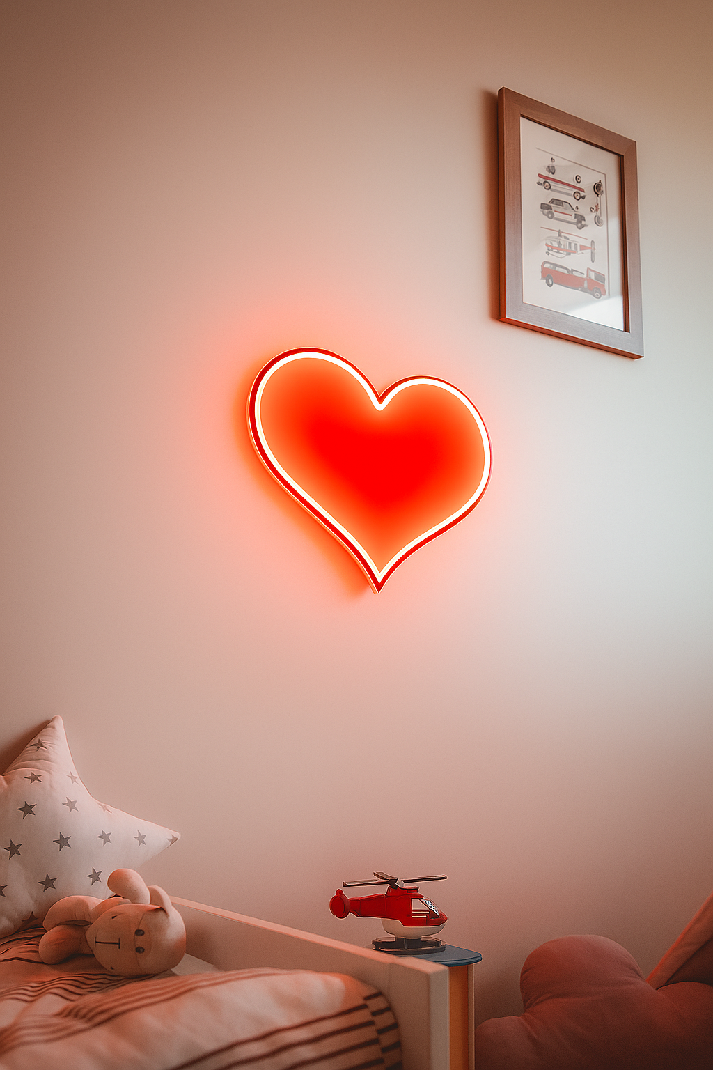 Uniwersalny design – sprawdzi się zarówno w pokoju dziecka, jak i w salonie, sypialni czy na specjalne okazje, takie jak Walentynki.
